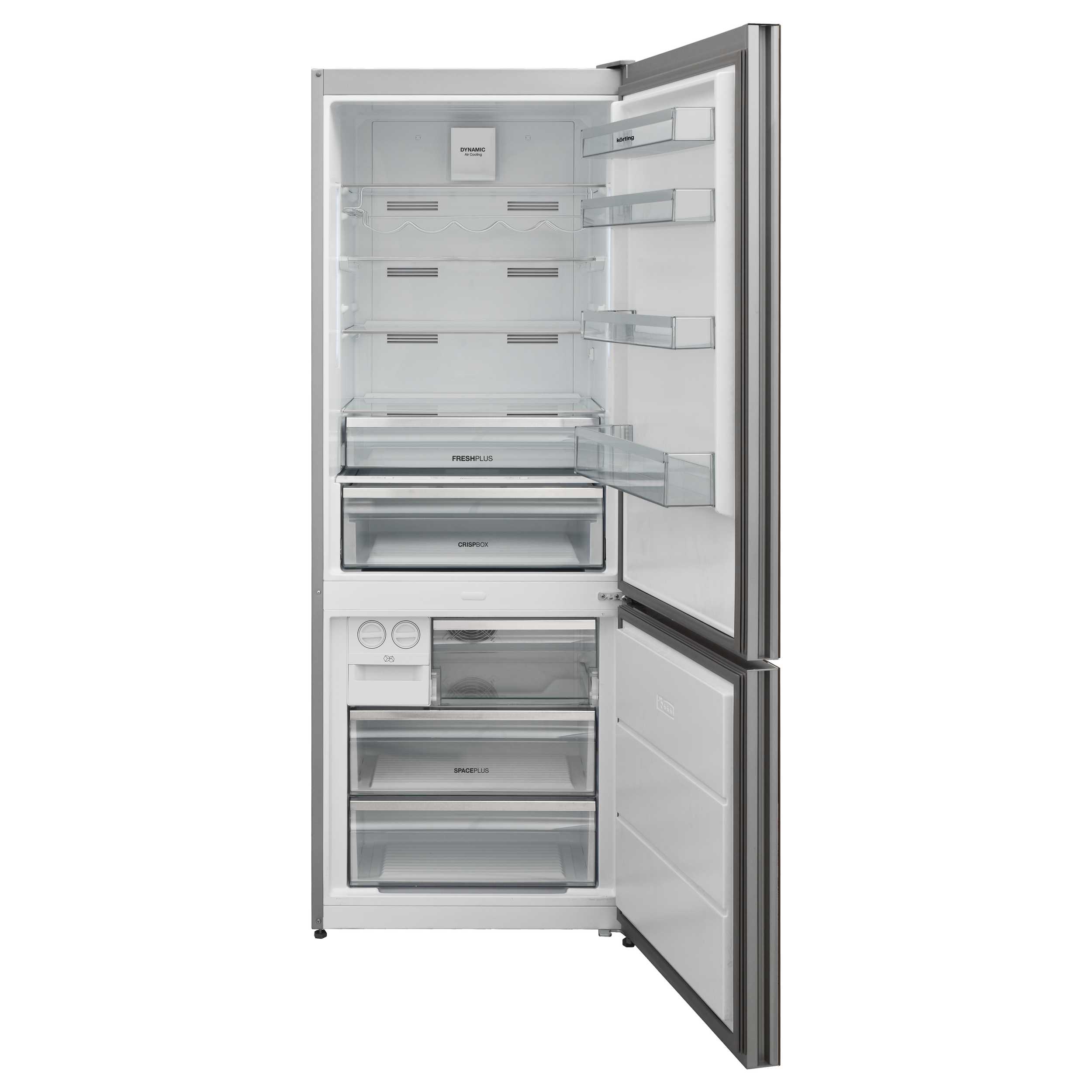 Специальный вентилятор в холодильной камере обеспечивает перемешивание воздуха и соответственно равномерное распределение температуры. Также динамическая система способствует уменьшению, смешиванию запахов в холодильнике и быстрому охлаждению большого количества продуктов.