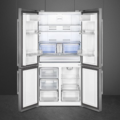 Side-by-side холодильник SMEG FQ60XDAIF предназначен для кратковременного хранения различных готовых блюд, охлаждённых продуктов и напитков, а также для заморозки и длительного хранения замороженных продуктов и полуфабрикатов. Полки изготовлены из закалённого стекла, благодаря чему выдерживают большую нагрузку. Данная модель идеально подойдёт для просторной кухни, выполненной в современной стилистике.