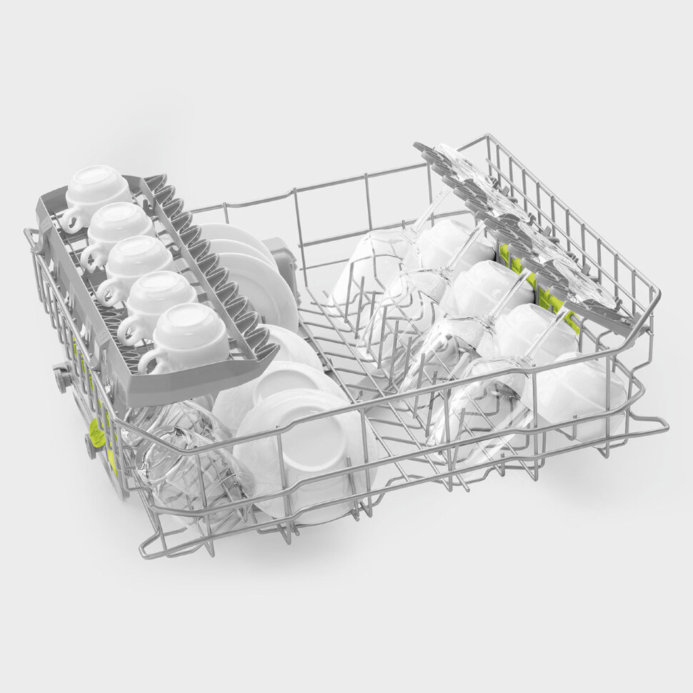 • Регулируемая по высоте верхняя корзина с фиксированными держателями (на 3 горизонтальных уровня)