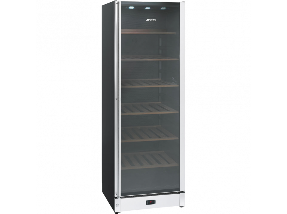 Винный шкаф SMEG благодаря современным технологиям обеспечивает правильные условия для хранения винных напитков. Цифровой термометр позволяет контролировать климат внутри камеры. LED-лампы ярко освещают отделение, не влияя на изменение температуры. Электронное управление отличается точной и быстрой установкой параметров. Замок двери гарантирует безопасное использование.