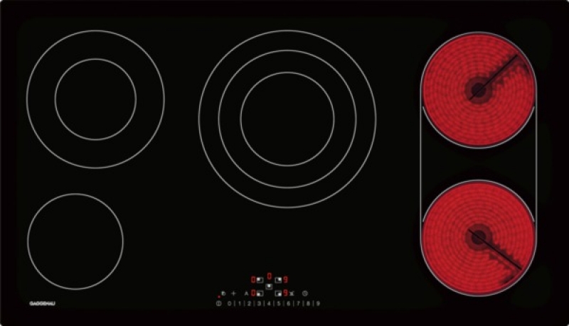Функциональная варочная панель, шириной 90 см от Gaggenau. В модели предусмотрено пять конфорок, три из них с зонами расширения. Комфортное сенсорное управление, позволяет настроить необходимый режим приготовления.